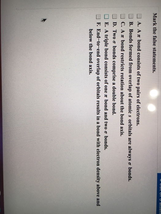 Oneclass Mark The False Statements A Pi Bond Consists Of Two Pairs Of Electrons Ent To End Overlap